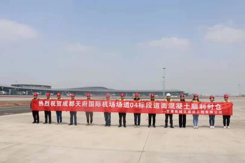 項目工程于2019年4月9日正式開工。同年12月7日道面水泥混凝土試驗段開始施工,于2021年3月23日順利封倉。此次封倉標志著項目部已全部完成承包范圍內25.6萬立方米的水泥穩定碎石攤鋪、25.5萬立方米的道面混凝土澆筑、7456m的鋼筋混凝土排水溝、585m預留6#下穿通道、遠機位工作休息室等施工內容,為成都天府國際機場盡快投入運營奠定了堅實的基礎。